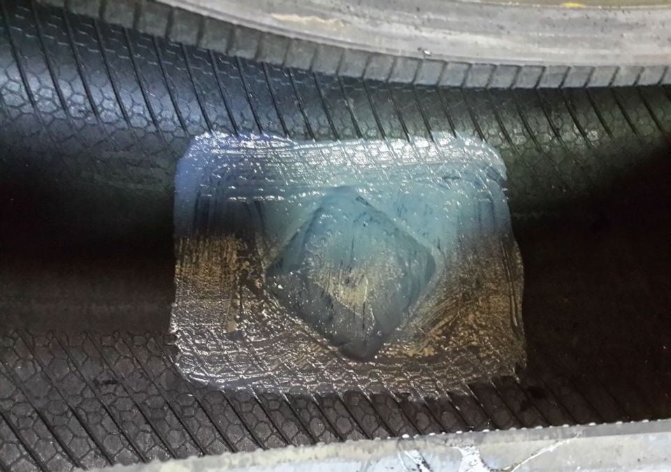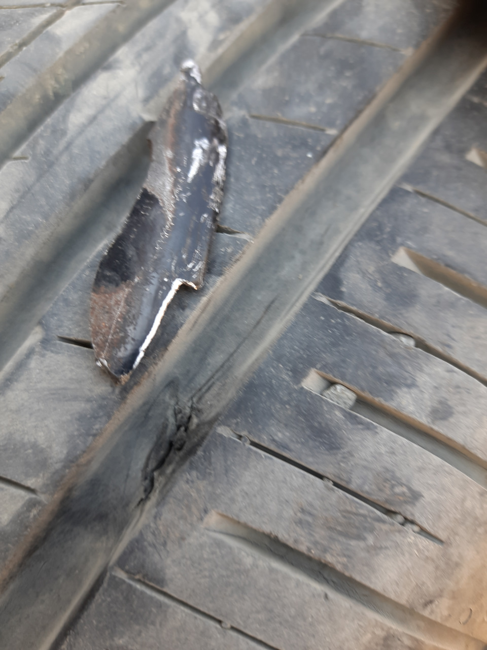 Когда я подъехал из вагончика вылез «поддатый мастер», который после осмотра колеса, плоскогубцами вытащил плоский кусок метала из резины.Так как разрез был немаленький, решено было накладывать заплатку, предварительно разбортировав колесо.На все про все ушло минут 35, за работу мастер взял 500 руб. пожелав на последок мне так же «ни гвоздя ни жезла»…)))