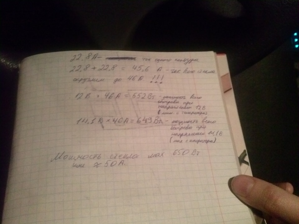 Для подстраховки и моей личной уверенности в том что амперметр электрика имеет не большую погрешность подключили одновременно оба контура. Получили целых 45,6А. Отдал электрику 100р за проделанную работу и хорошую консультацию, я укатил на работу, с мыслями о схеме и ращетах, а так же прикидывал сколько и чего купить.